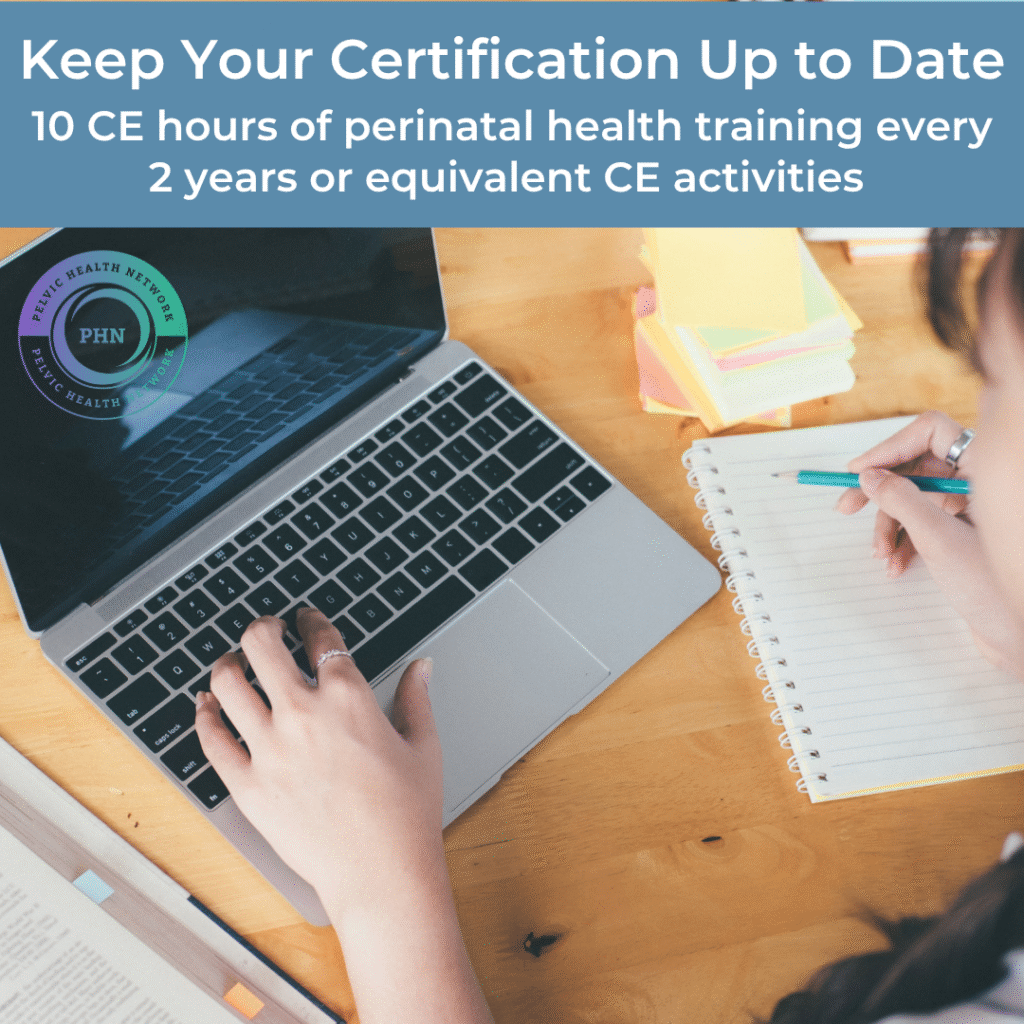 Complete 10 continuing education hours of perinatal health training related to maternal and/or infant health every two years OR an approved equivalent training activity (see 2-Year Recertification Requirements).